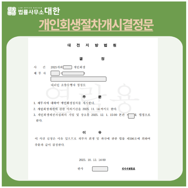 대전/ 30대남성/ 가전배송/ 개인회생/ 개시결정/ 5천6백만원 탕감