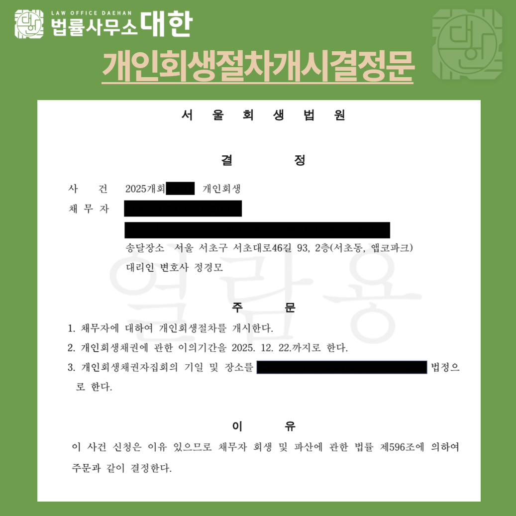 한국과 외국을 오가며 일을 하다가 부친이 병에 걸려 병원비로 채무 누적. 1차 보정만에 개시결정