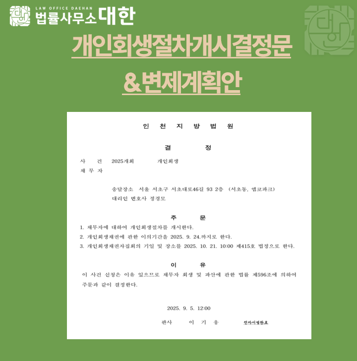 • 다음글 서울/ 40대 남성/ 근로소득자 개인회생 개시결정 / 1억 6,385만원 탕감