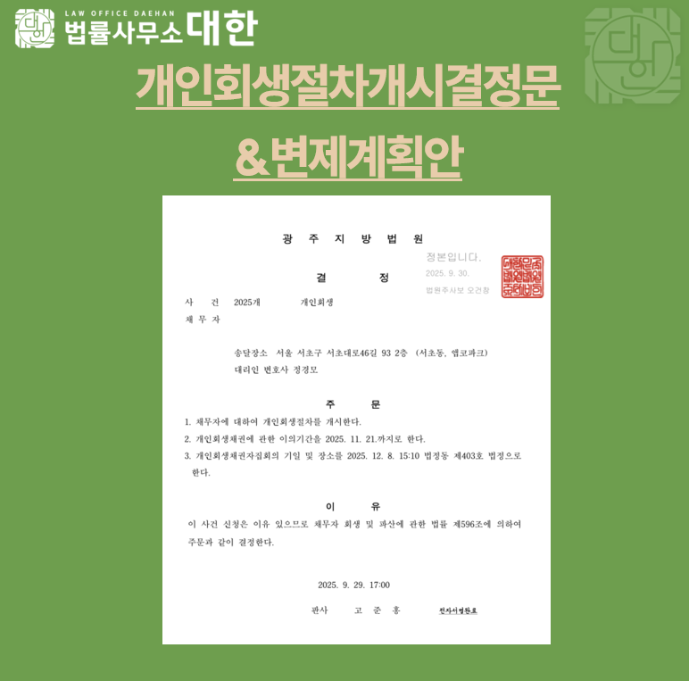 • 다음글 수원/ 50대여성 / 근로소득자 개인회생 개시결정/ 8,645만원 탕감