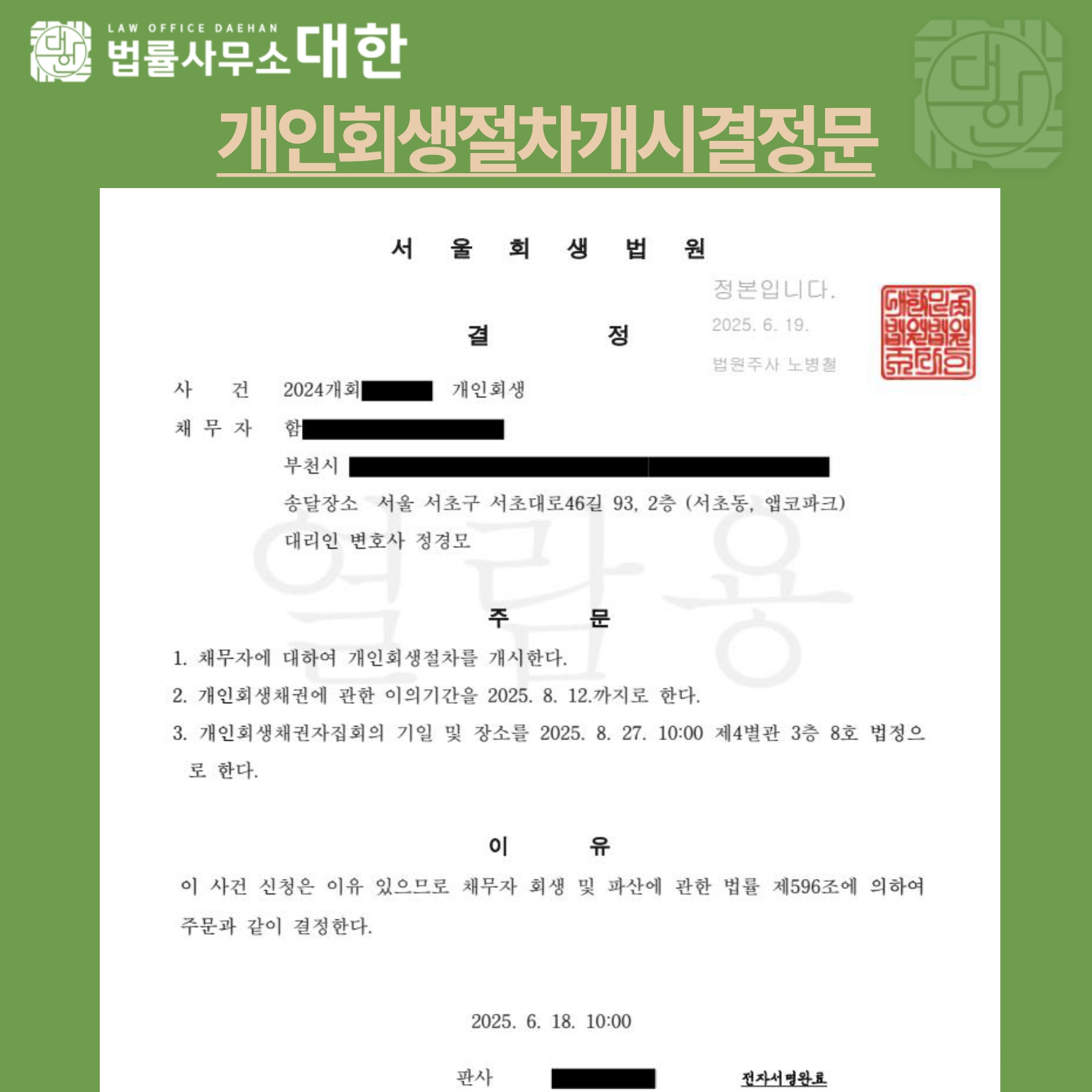 • 이전글 부산/40대 남성/개인회생 개시결정/원금 63%탕감