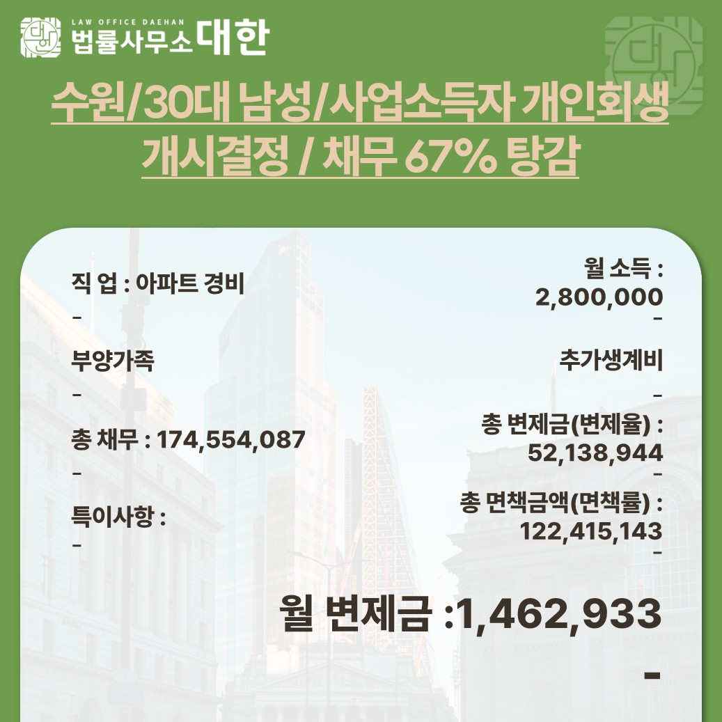 수원 / 30대 남성 / 사업소득자 / 개인회생 개시결정 / 122,415,143원