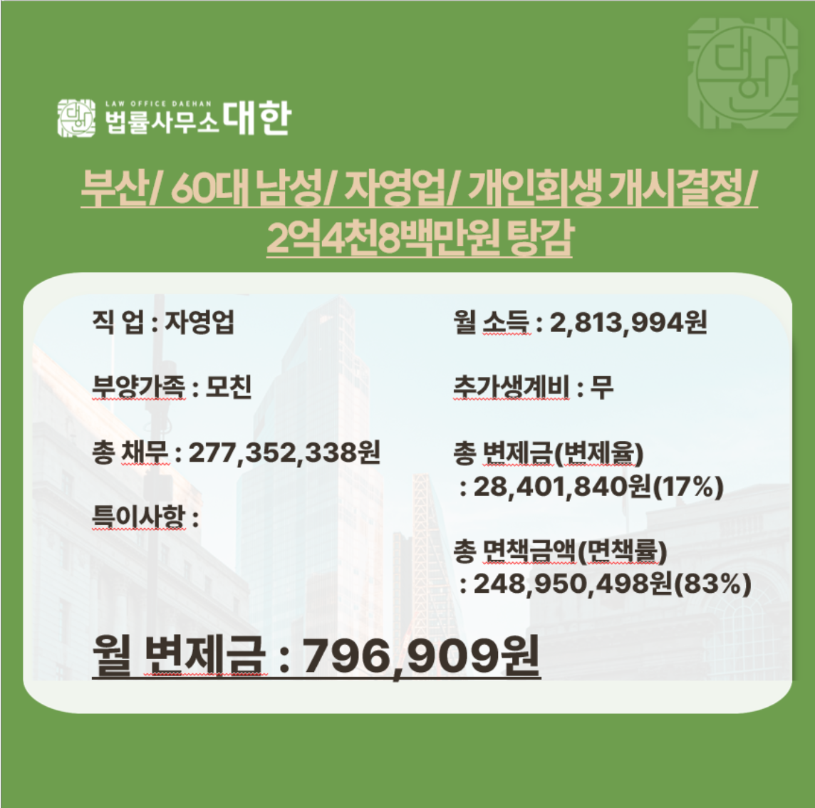 부산/ 60대 남성/ 자영업/ 개인회생 개시결정/ 2억4천8백만원 탕감