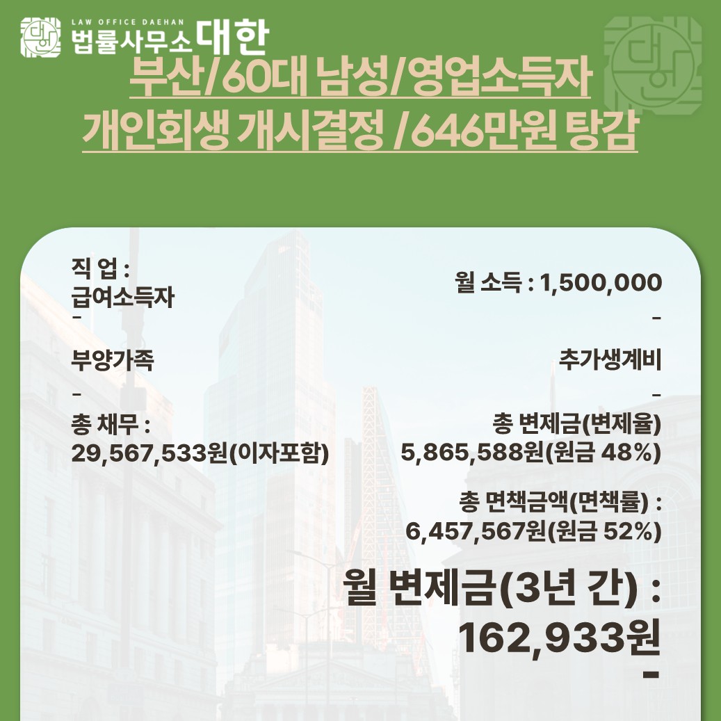 인천 / 20대 남성 / 급여소득자 / 개인회생 개시결정 / 3,4797만원 탕감