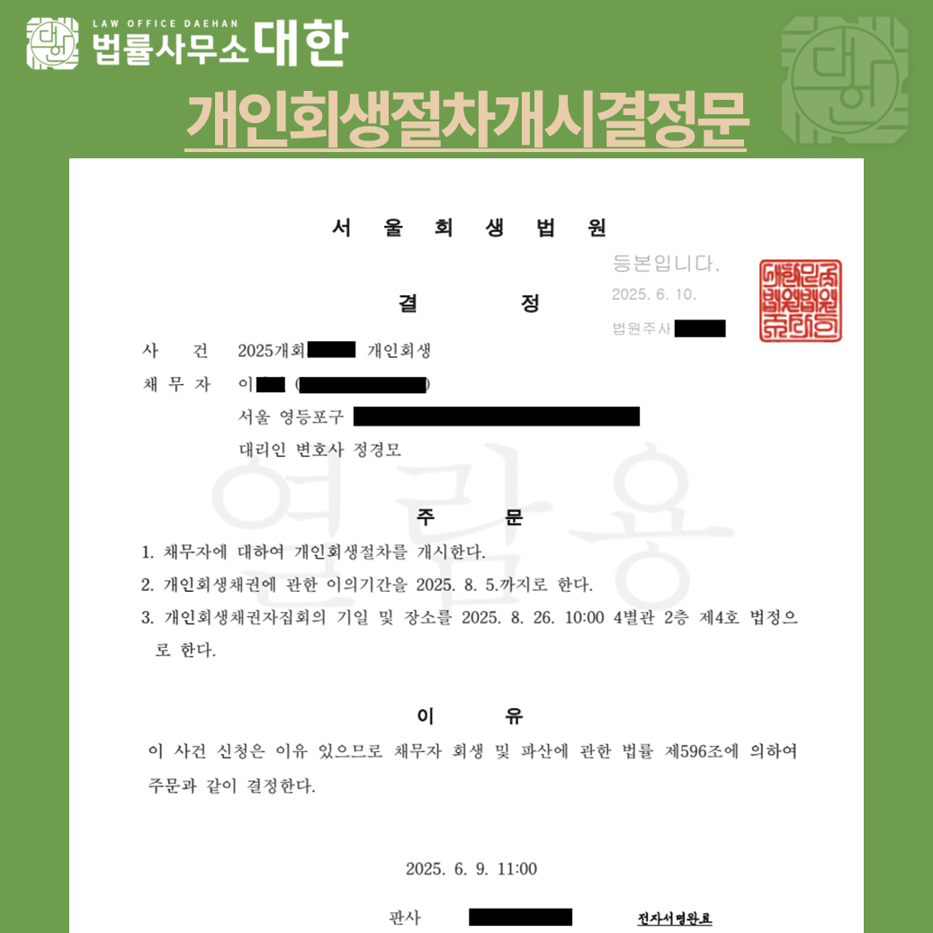 코로나19로 인한 경기 침체로 사업 운영에 어려움을 겪으면서 채무 변제가 불가능해져 개인회생을 신청하게 되었습니다. 채무자는 배우자가 별도의 소득이 없는 가정주부이며, 슬하에 자녀 3명을 둔 4인가구의 생계를 책임지고 있다는 점을 법원에 소명하였습니다. 이에 법원은 생계비를 인정하였고, 1차 보정권고를 성실히 이행한 후 개시결정을 받을 수 있었습니다.