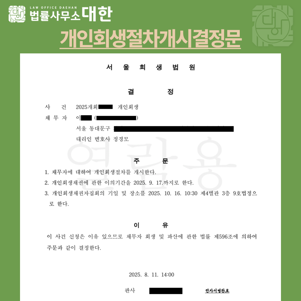 서울 / 40대 남성 / 영업소득자 / 개인회생개시결정 / 8,185만 원 탕감