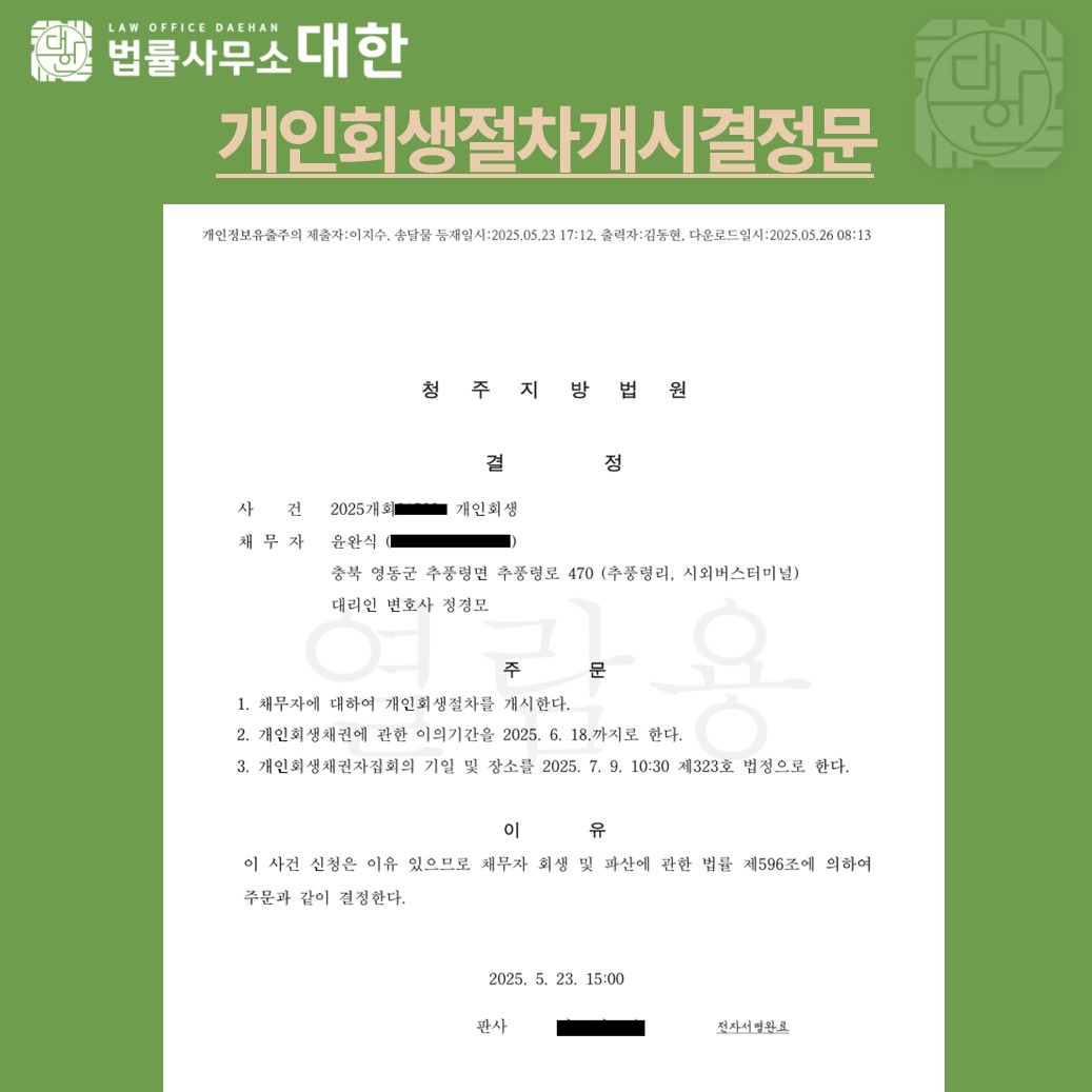 서울 / 40대 여성 / 급여소득자 개인회생 개시결정 / 2272만원 탕감