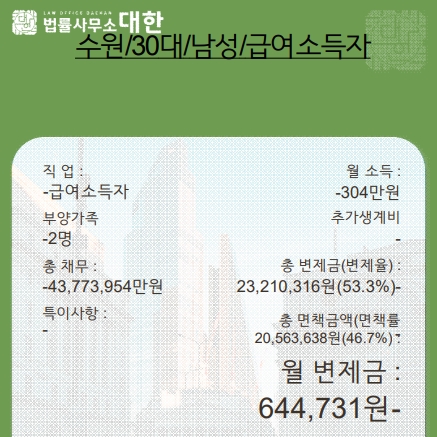 수원/30대/남성/급여소득자/개시결정/20,563,638원 탕감