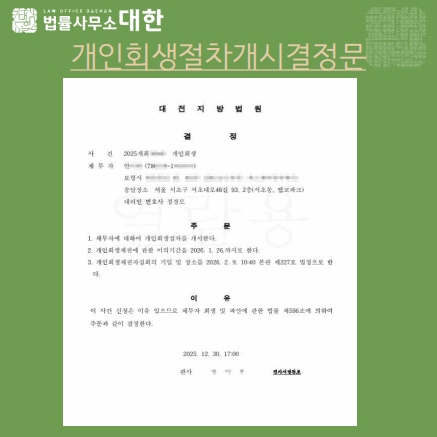 • 다음글 인천/50대 남성/개인회생 개시결정/원금 63%탕감