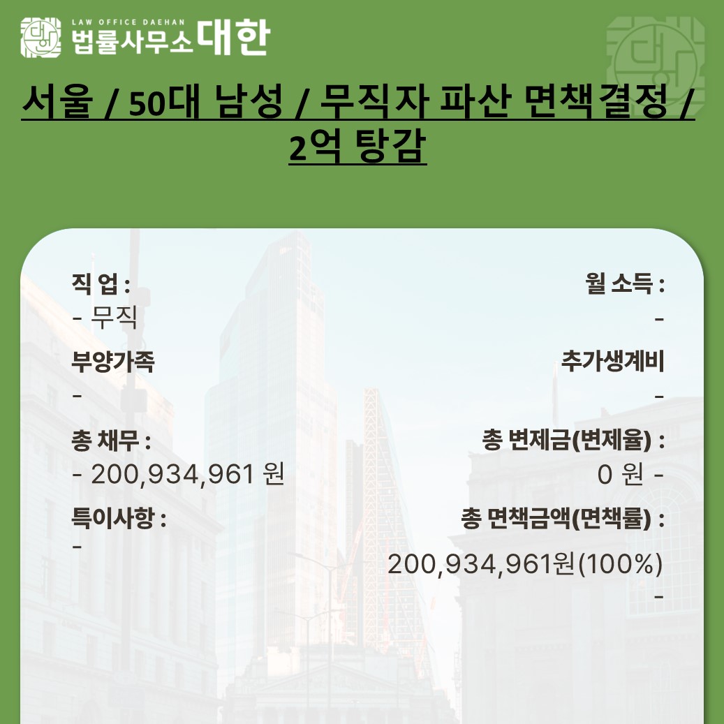 서울 / 50대 남성 / 무직자 파산 면책결정 / 2억 탕감