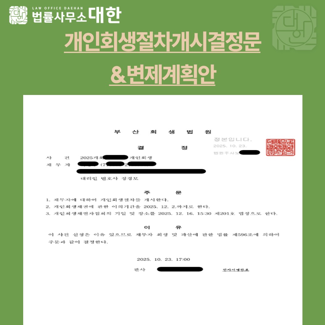 부산/50대 여성/영업소득자 개인회생 개시결정 / 7,759만원 탕감