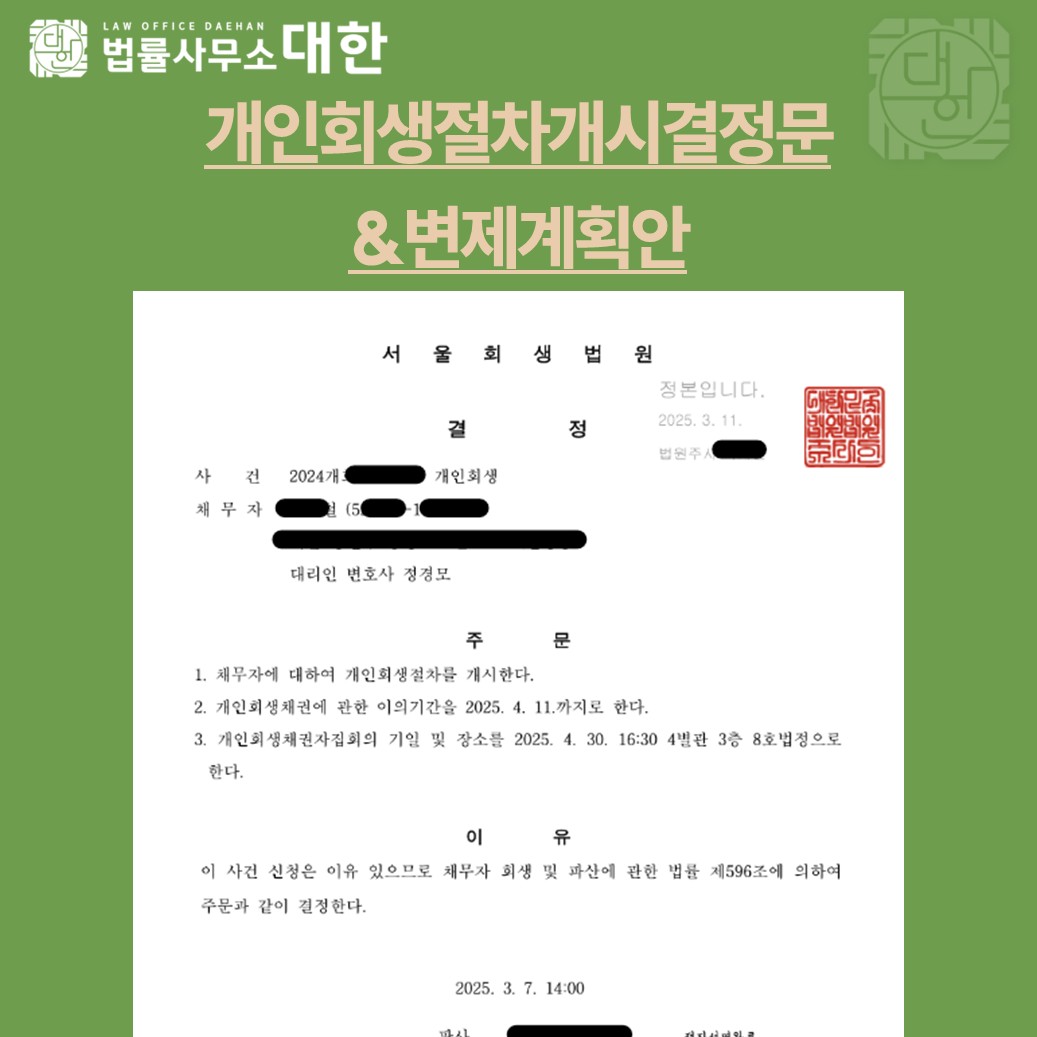 • 다음글 서울/50대 여성/자영업자/개인회생 개시결정/1억 1,393만원 탕감