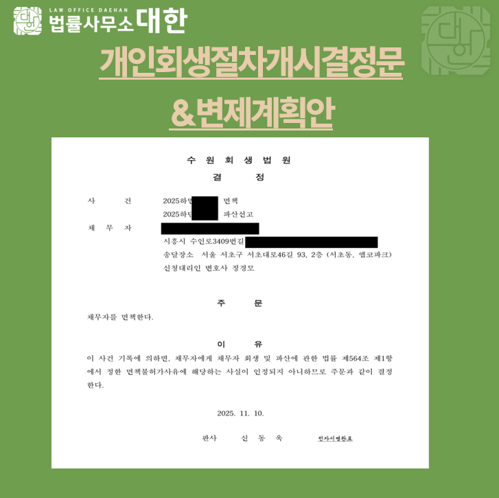 수원/ 50대여성 / 무직/ 개인파산 면책결정/ 1억 6천만원 전액탕감
