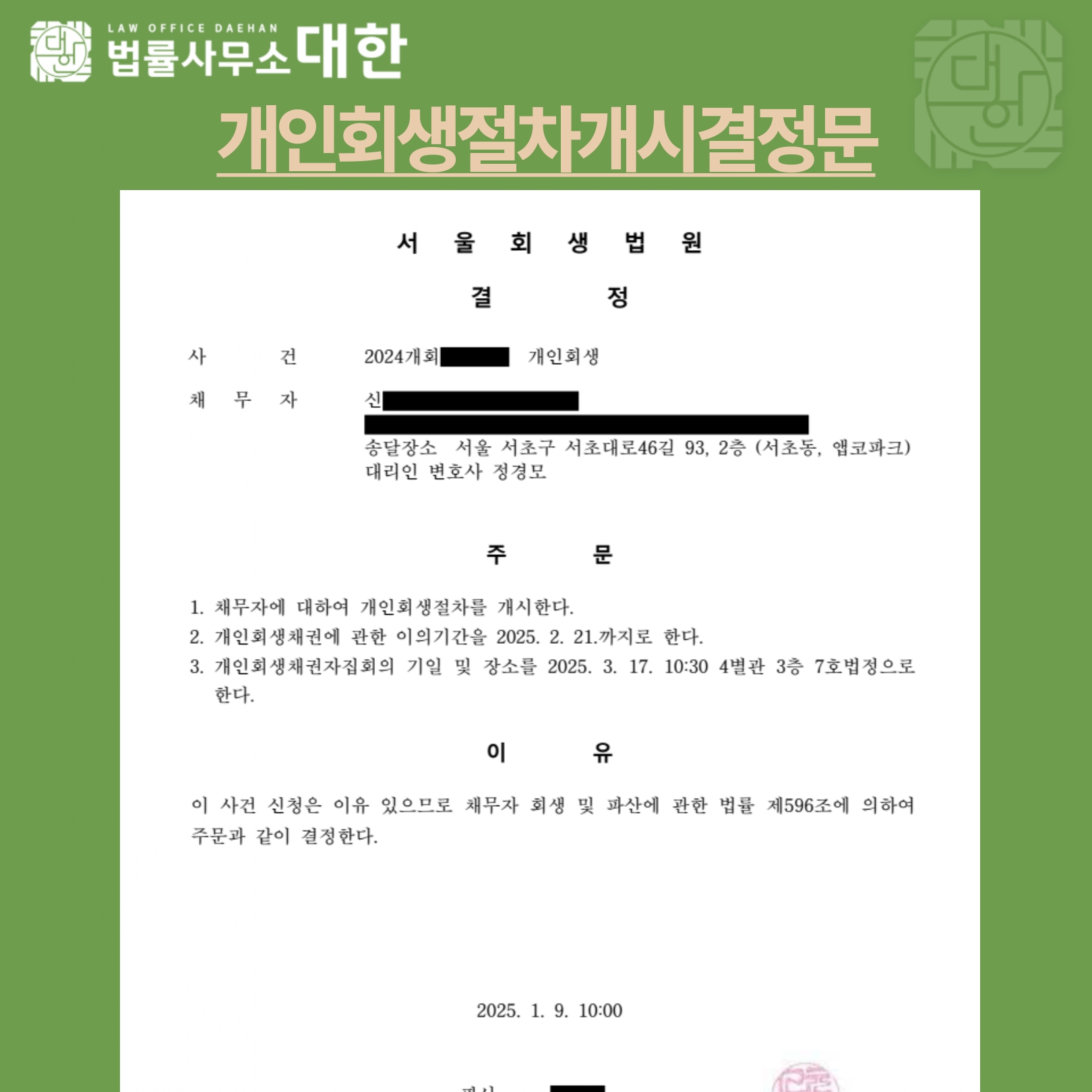 • 다음글 광주 / 30대 남성 / 급여소득자/개인회생 개시결정 / 원금 50%탕감